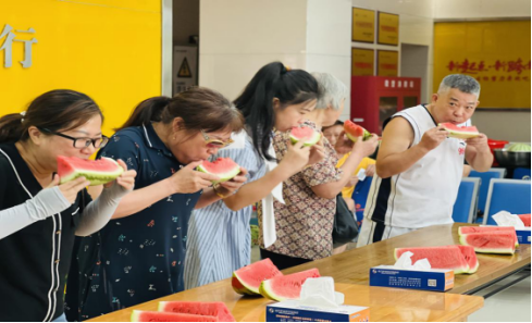 8月11日下午,由石门沪农商村镇银行举办的首届吃西瓜活动,在营业部大厅开赛,轻松趣味的活动吸引了众多“吃瓜”群众前来参与。
